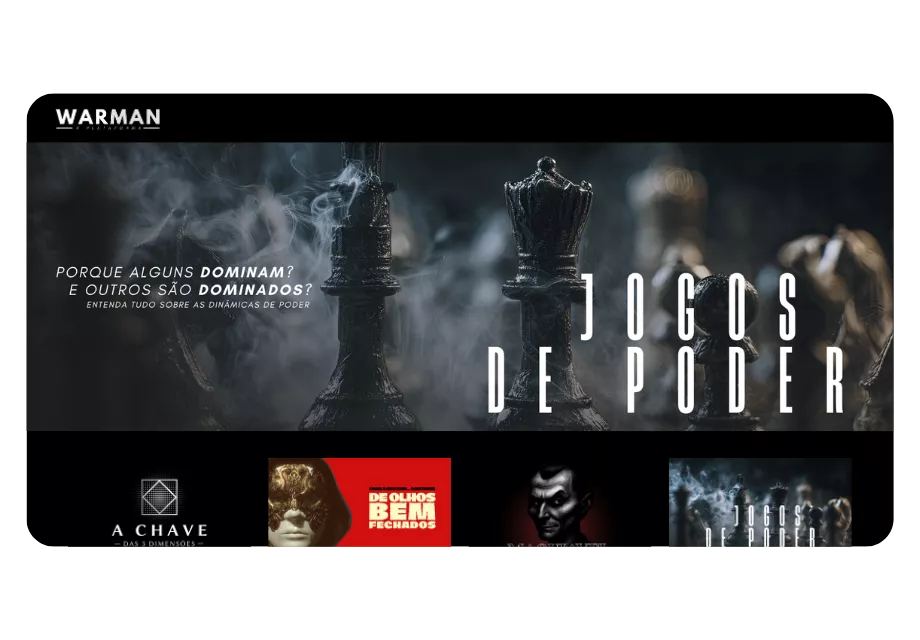 A Plataforma WAR MAN é o espaço onde disponibilizo aulas em formato de séries e documentários. Aqui ofereço reflexões que vão mudar sua forma de ver a vida.